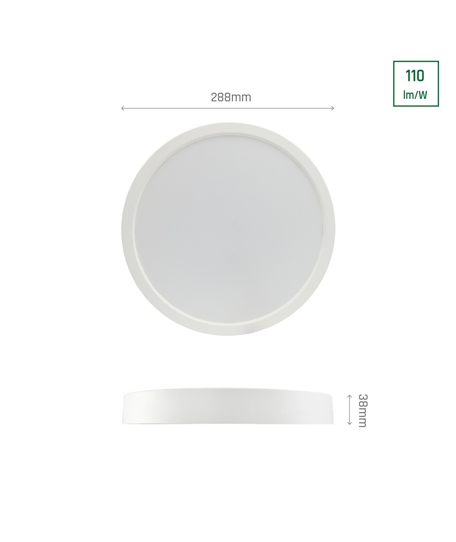Forvandle hjemmet ditt med den moderne Spectrum 24W LED taklampe, designet for å gi overlegen belysning og tilføre stil til ethvert rom. Denne allsidige lampen har en diameter på 29 cm og en slank høyde på 3,8 cm, noe som gjør den ideell for både lave og høye tak.
