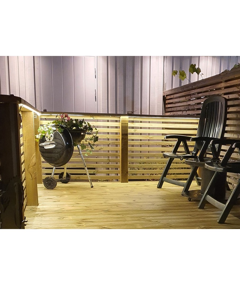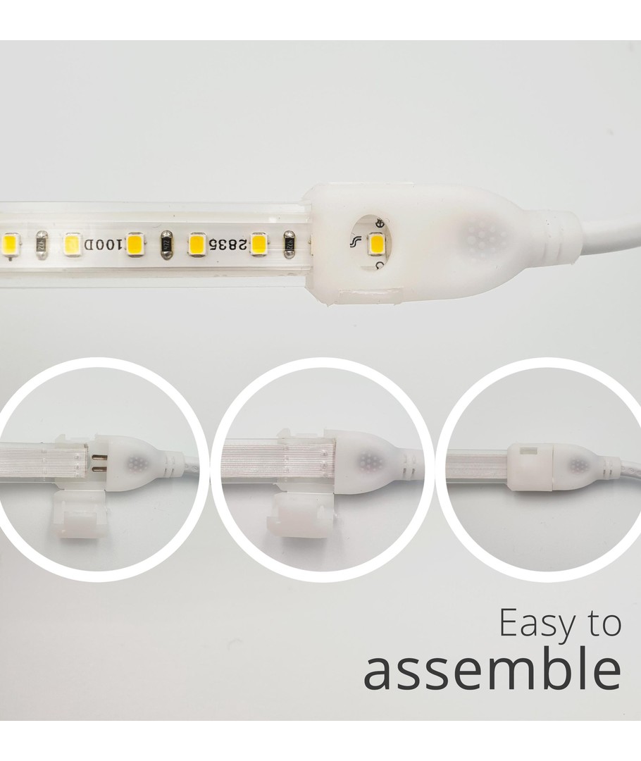 For å sikre maksimal tetthet og vannbestandighet, må skjøtene forsegles med klar silikon. Denne fleksible og slitesterke LED-stripen er enkel å tilpasse og kan kuttes hver 10 cm for presis tilpasning til ditt prosjekt.