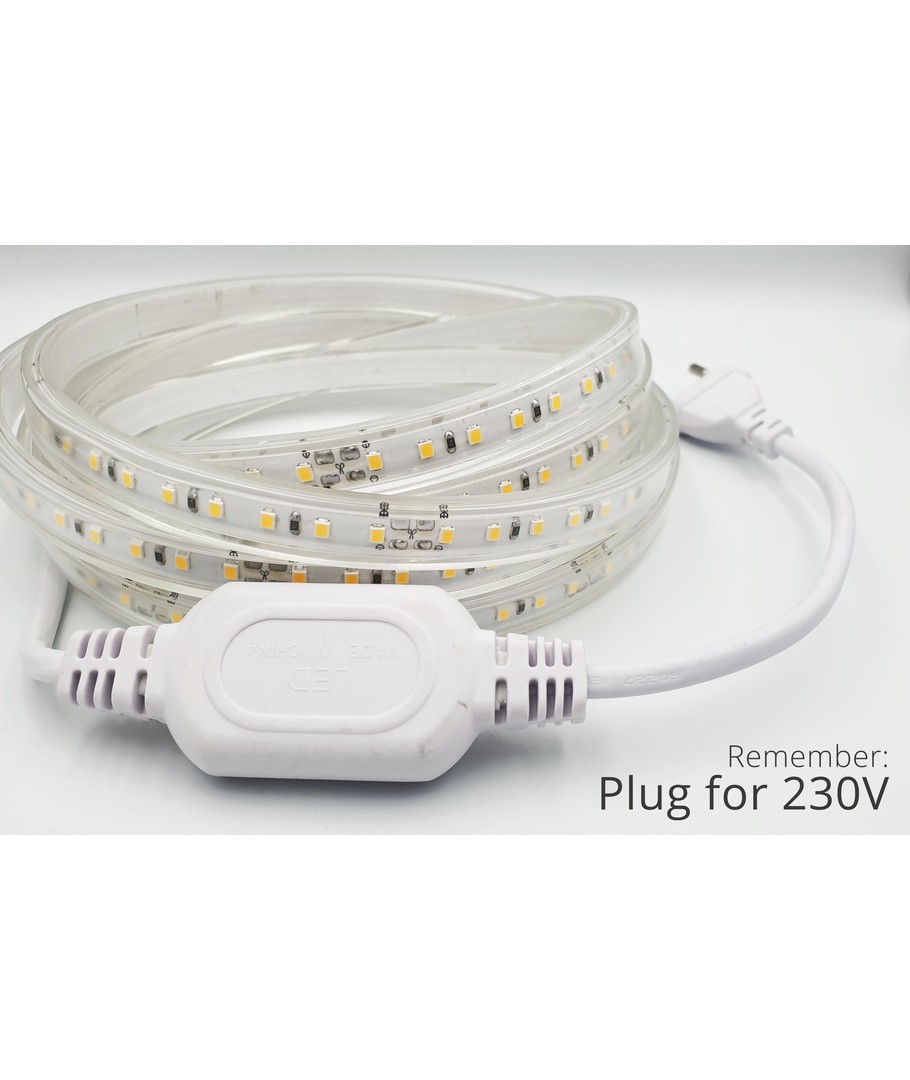 230V, IP67, 1000lm/m, 12W/m, kan klippes for hver 10cm