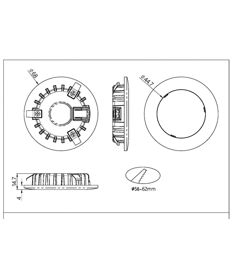 Designet med presisjon, har LEDlife Unni68 møbelspot dimensjoner på 14,7 x Ø68 mm. Den passer sømløst inn i en hul størrelse på 56 mm, noe som sikrer enkel og trygg montering.