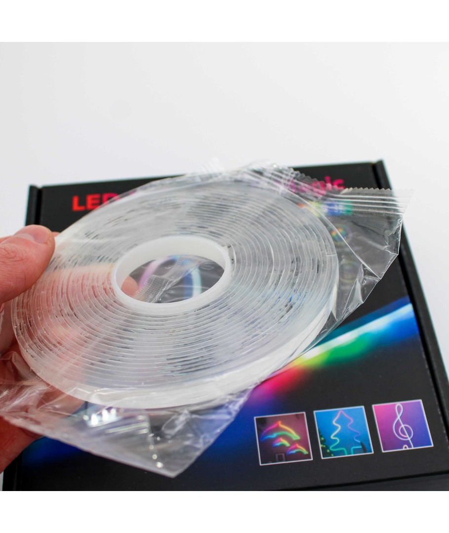 Komplett med 5 meter nanogel monteringstape + ekstra klips.