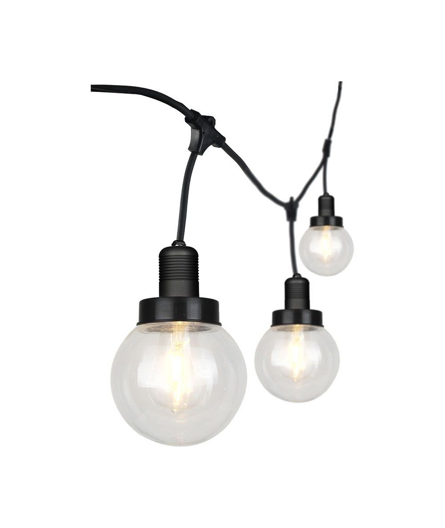 Den 3m E27 lyskjede med 6 kupler er en stilfull og funksjonell løsning for utendørs belysning, perfekt for å skape en hyggelig atmosfære i hagen eller på terrassen.
