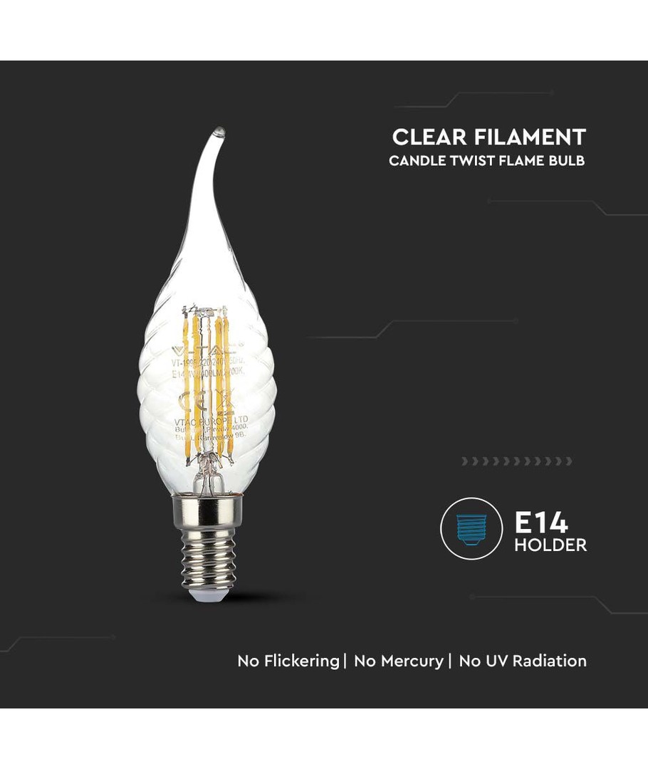 Denne vakre 4W kertepæren med E14 liten fatning bringer en varm og koselig atmosfære inn i hjemmet ditt. Med en flammelignende design og høy lysspredning på 300 grader sikrer den jevn belysning av ethvert rom.