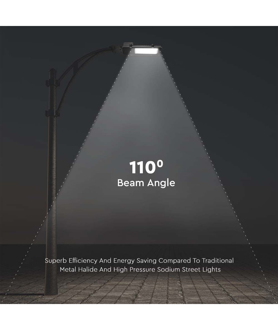 Dette gatelyset fra V-Tac er en kraftig og effektiv løsning for utendørs belysning. Med en effekt på 100W og en lysstyrke på 10,000 lumen, tilbyr det en optimal balanse mellom styrke og energieffektivitet.