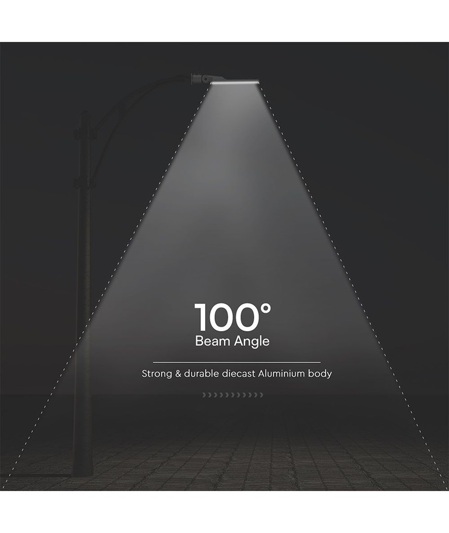 V-Tac 100W LED gatelys er en utmerket løsning for dem som søker pålitelig, effektiv og miljøvennlig belysning for utendørs bruk.