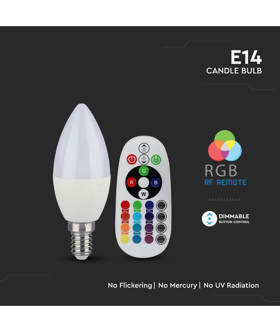 Denne pakken med 5 stk. RGB+CW E14 pærer gir deg muligheten til å skape en stemningsfull atmosfære i hjemmet ditt. Med den medfølgende RF fjernkontrollen kan du enkelt styre lysstyrke og farger for å tilpasse belysningen etter dine behov.