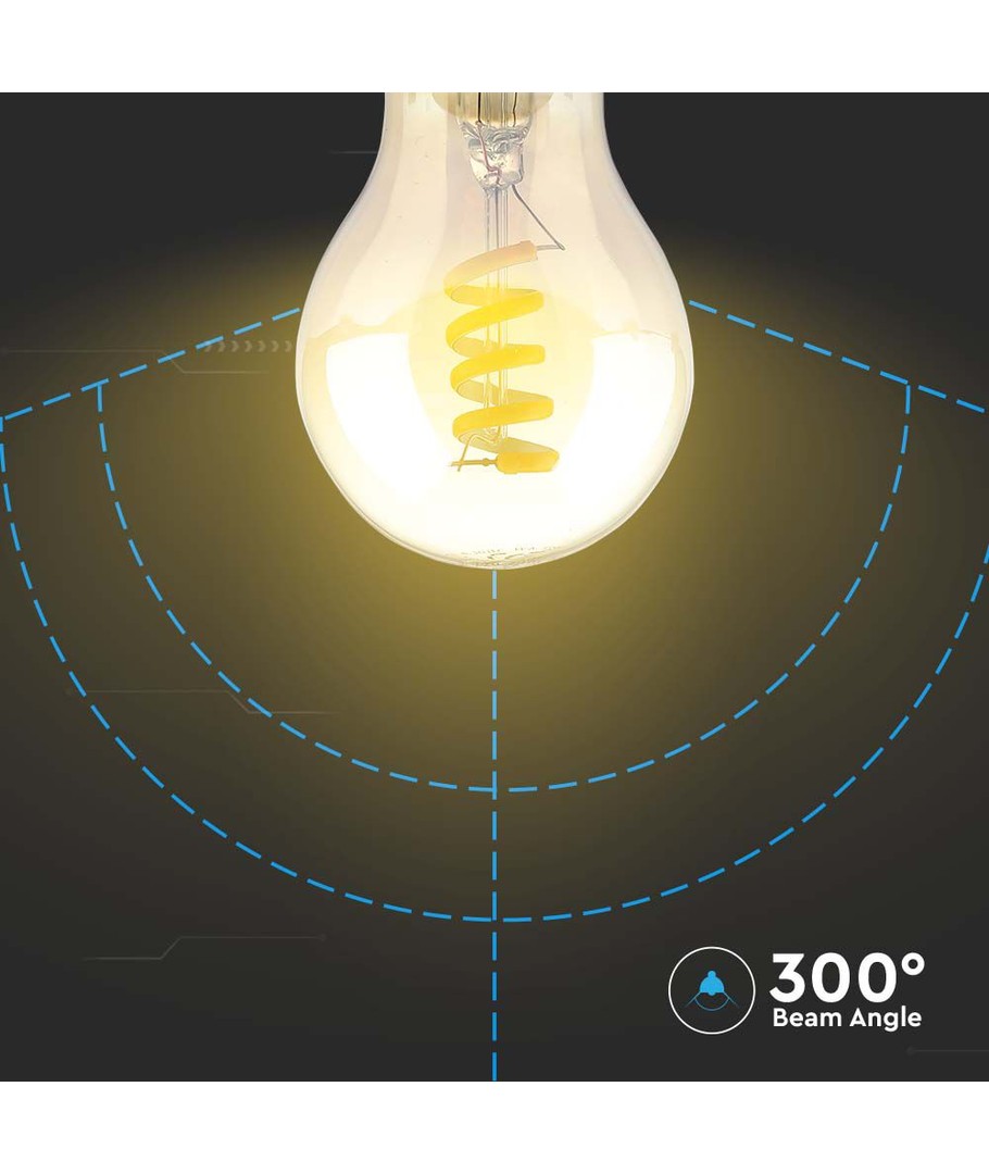 Pæren har en ekstra varm fargetone på 1800K, som gir et ekstra koselig og varmt lys. Dette designet etterligner den klassiske skjønnheten i gammeldagse glødetrådpærer med sin spiral glødetråd og amber farge.
