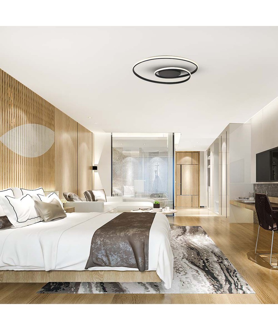 Taklampen kommer i en elegant svart finish, laget av robust metall som sikrer både stil og holdbarhet. Med en integrert lyskilde er installasjonen enkel, og du kan raskt nyte denne flotte lyset i hjemmet ditt.