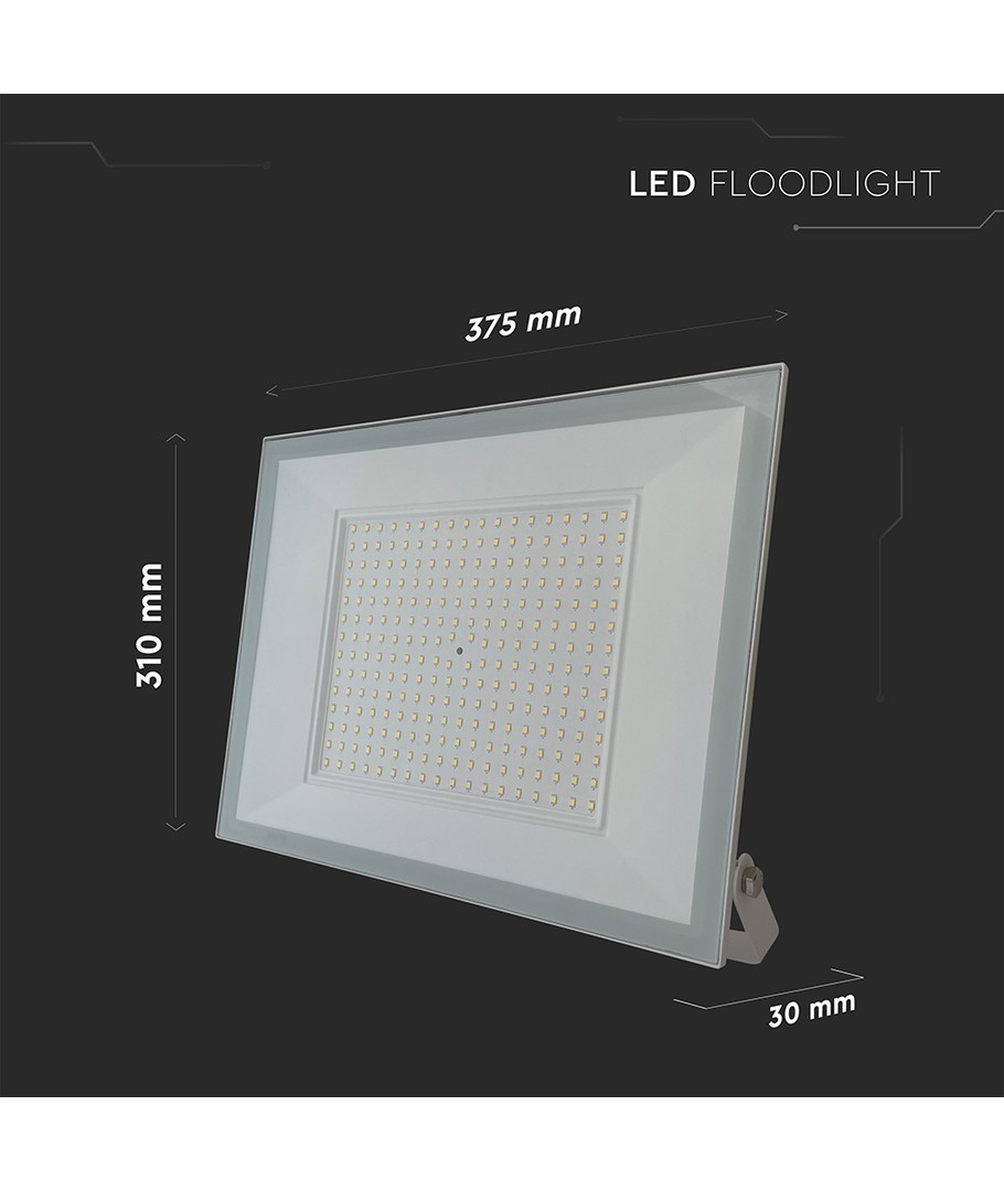 VT-44208 LED-projektør er designet for å levere høy lyseffektivitet med en effekt på 200W og en lysstyrke på imponerende 19200 lumen. Den har en bred lysspredning på 110 grader, som sikrer en jevn fordeling av lyset i området hvor den installeres.