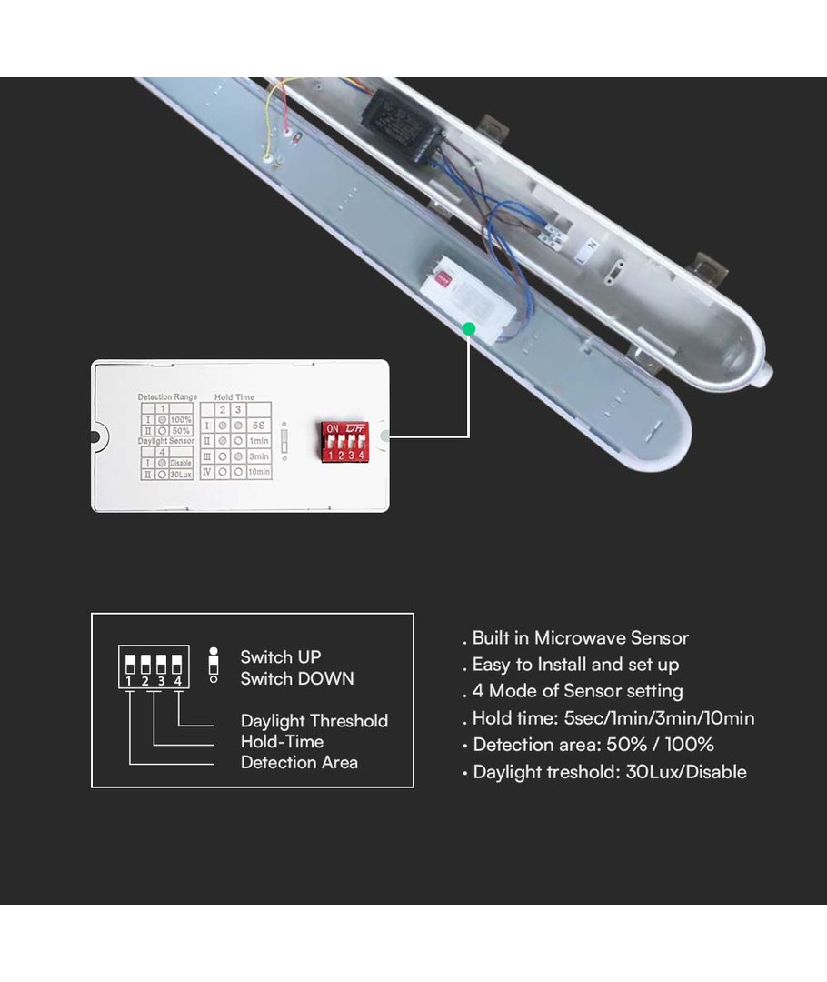Oppgrader belysningen din med denne 150 cm LED-armatur som tilbyr en optimal kombinasjon av høy lysstyrke og energibesparing. Med en effekt på 48W gir den en imponerende lysstyrke på 5760 lumen og en lysspredning på 120 grader som sikrer en jevn fordeling av lyset i rommet.