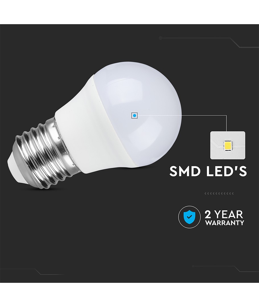 Opplev effektiv og energibesparende belysning med 6,5W E27 LED pære - G45, som tilbyr fremragende lysstyrke og holdbarhet.