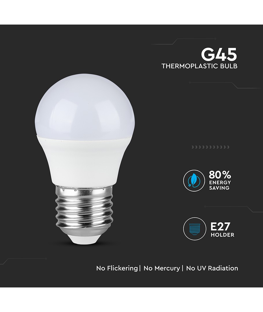 Denne 6,5W E27 LED pære - G45 kombinerer effektivitet med høy lysstyrke, noe som gjør den til det ideelle valget for både hjemmet og arbeidsplassen.