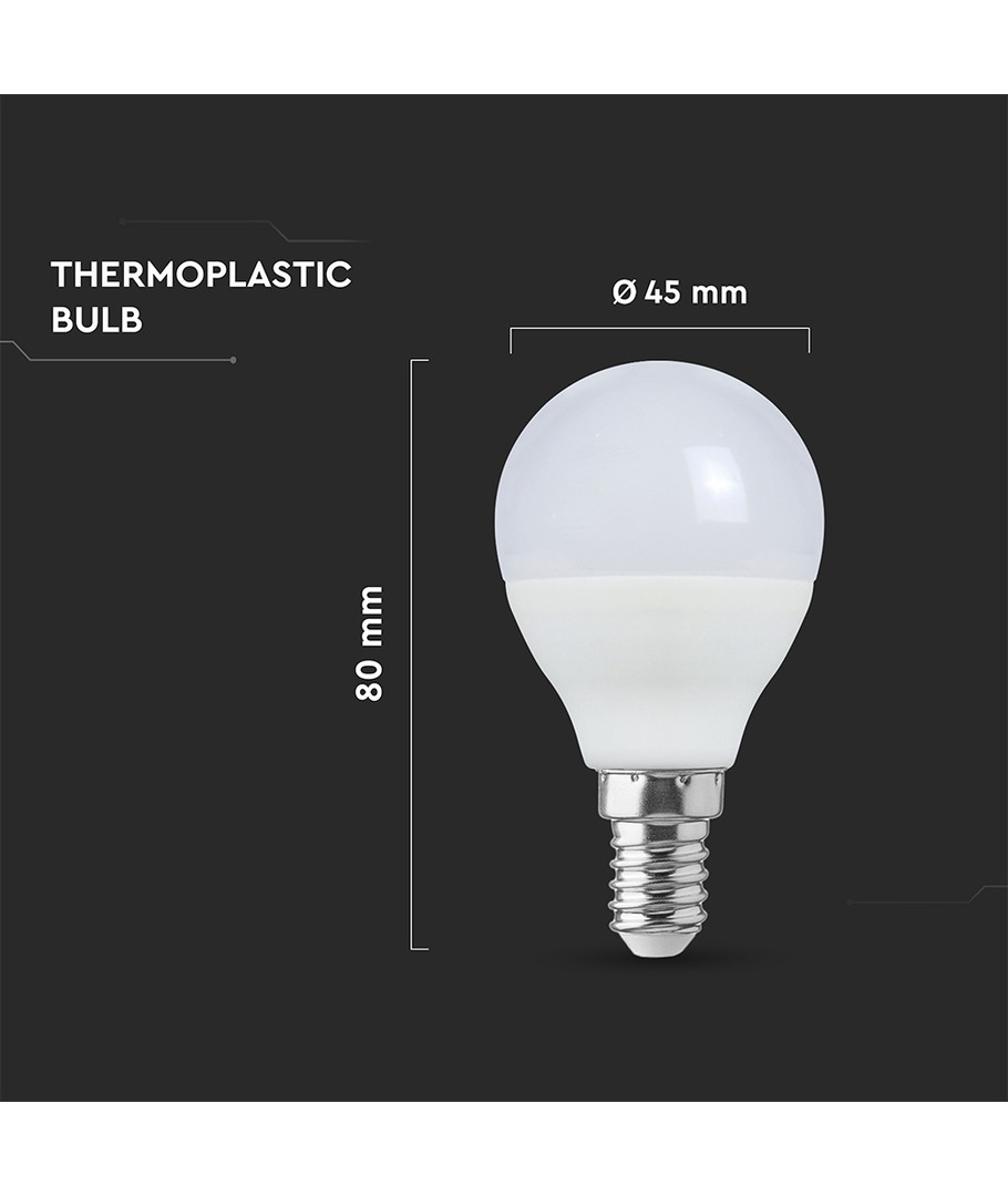 Oppgrader belysningen i hjemmet ditt med vår P45 VT-270 pære, designet for å gi optimal lysstyrke og kvalitet. Med en effekt på 6,5W og kompatibilitet med E14 liten fatning, passer denne pæren perfekt i mange lamper og armaturer.