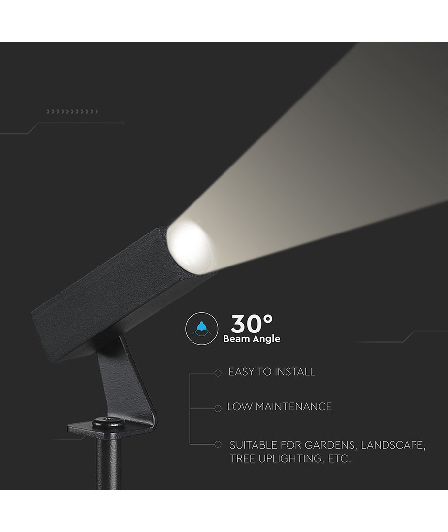 VT-10182 LED spydlampe 2W - aluminium 3000K svart hus IP65 firkantet- Lysstyrke: 60 lumen med en varm hvit fargetone på 3000K, ideell for utendørs belysning.