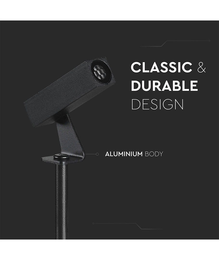 VT-10182 LED spydlampe 2W - aluminium 4000K sort hus IP65 firkantet er en pålitelig belysningsløsning for utendørs bruk.