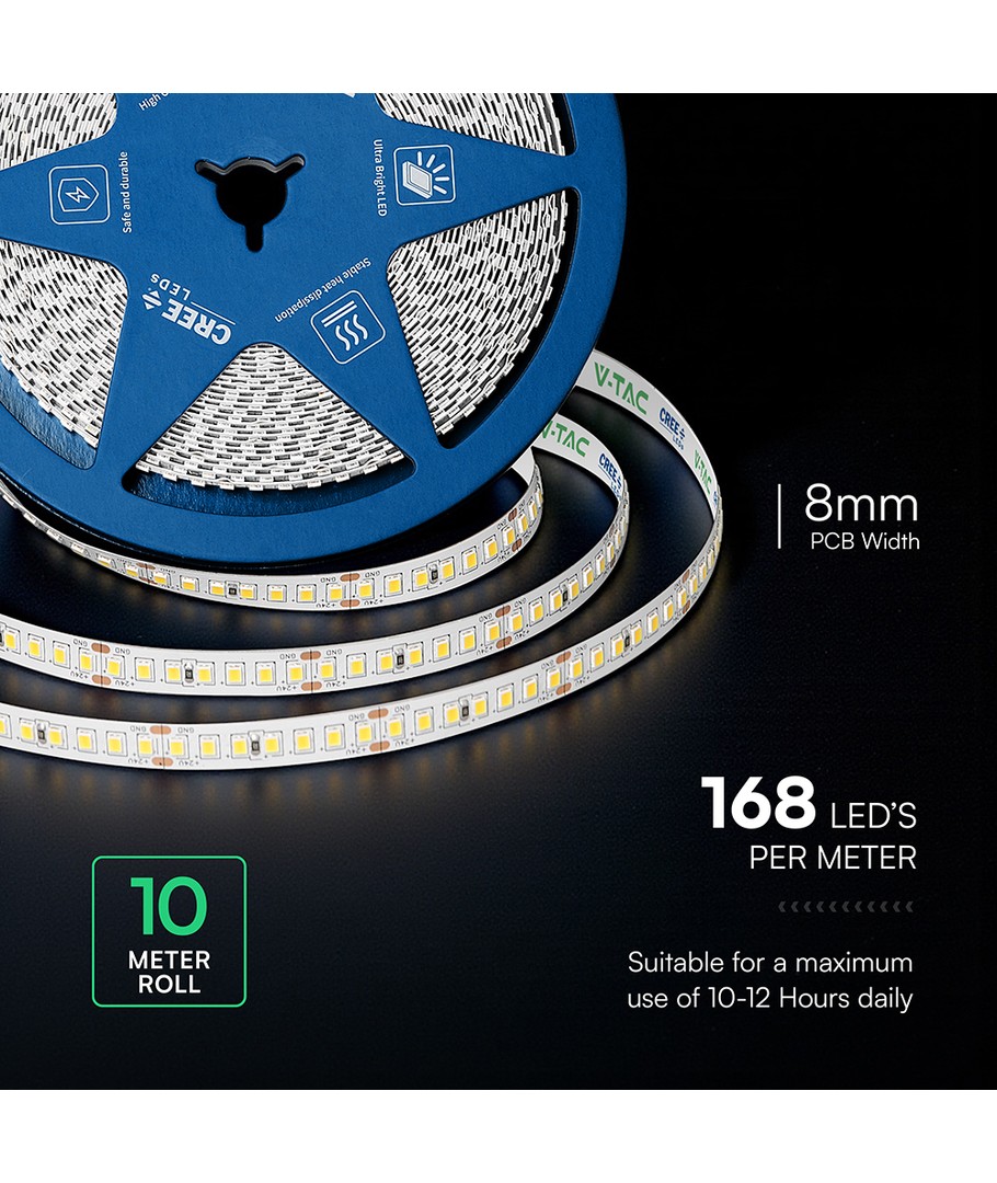 168 VT-2835 LED lyslist 12W/m - Cree chip, 4000K, IP20, 24V, 8mm dobbel PCB, 10m/rull, pris/m Utvid