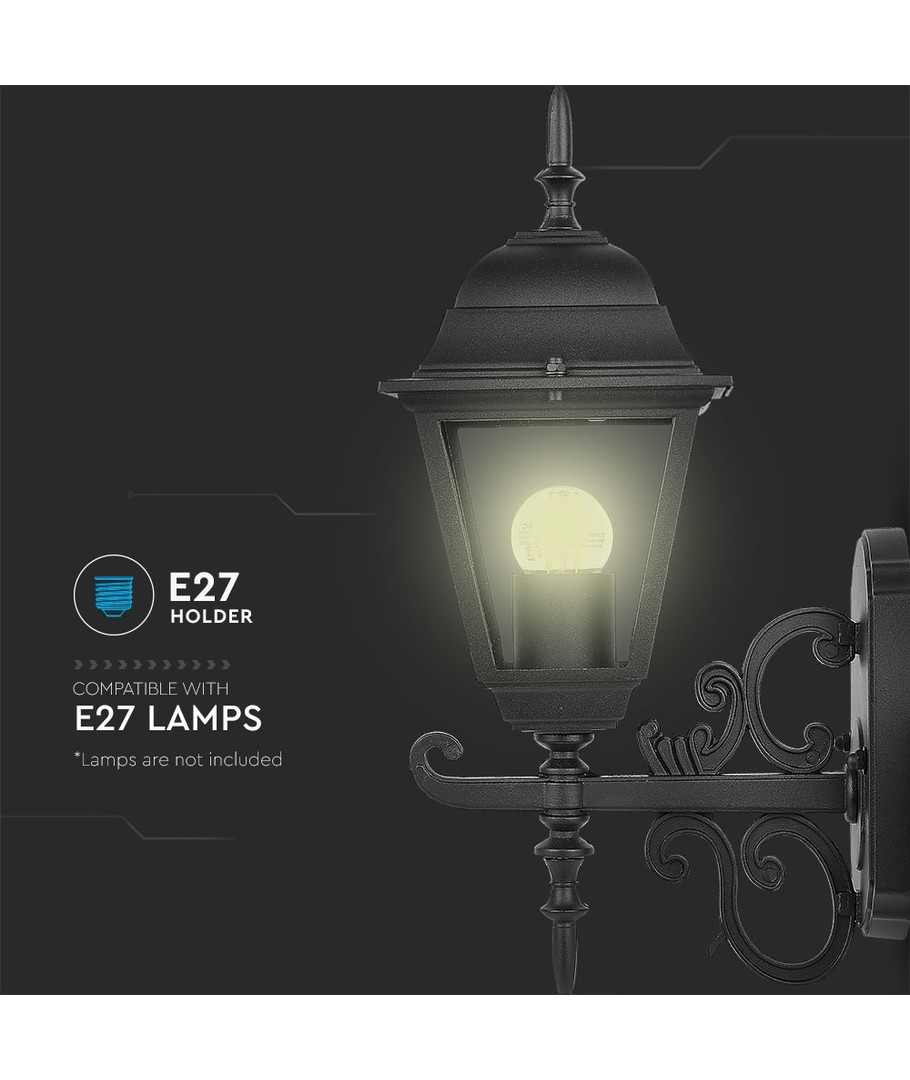VT-760 Vegglampe E27 er en elegant lampe for utendørs bruk, som kombinerer stil med funksjonalitet.