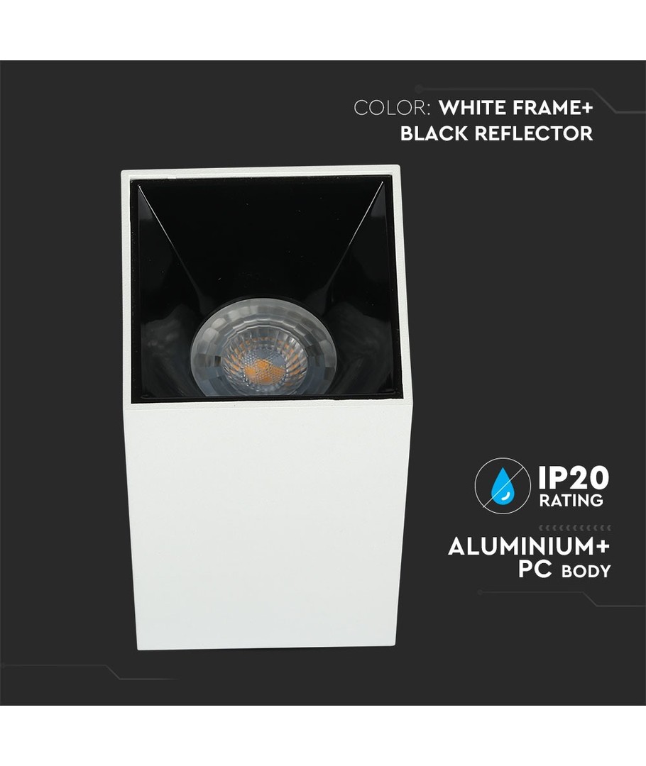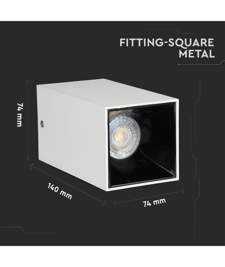 Vt-882 lampe GU10 er en stilig og moderne firkantet lampe i hvitt og svart design.