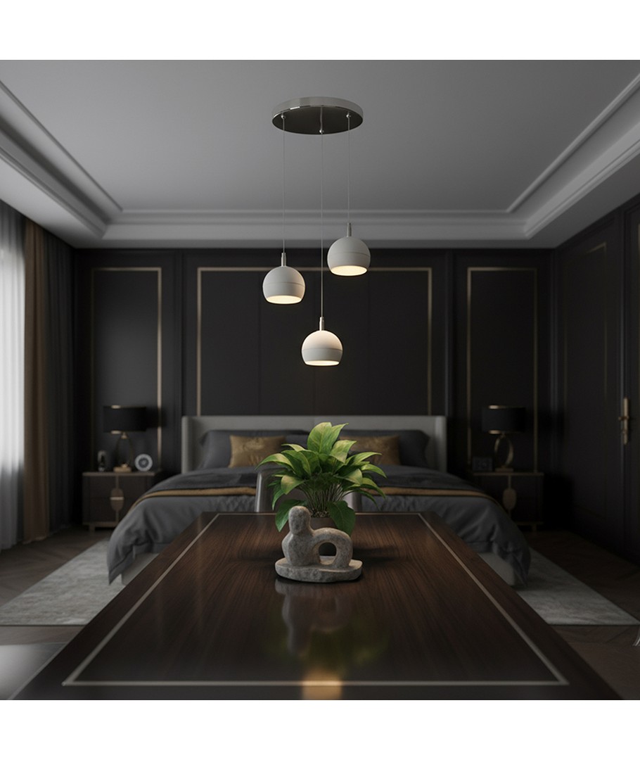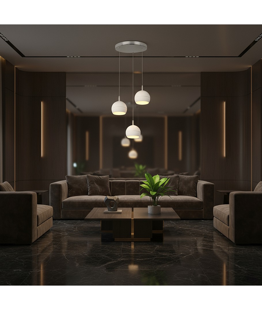 Elegant hengelampe som kombinerer moderne design med effektiv belysning.- Lyskilde: Utstyrt med 3x10W LED, sikrer jevn og effektiv belysning.