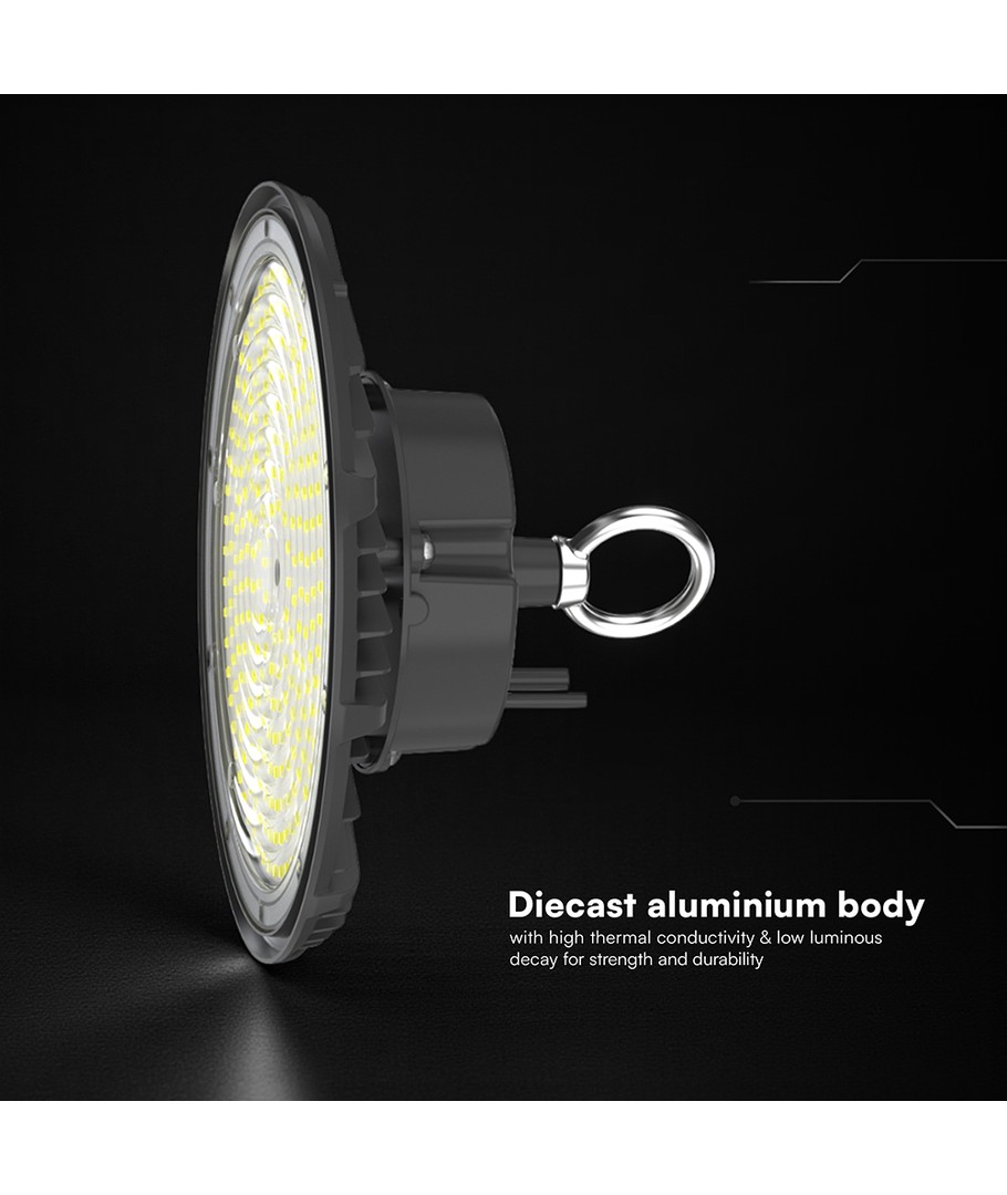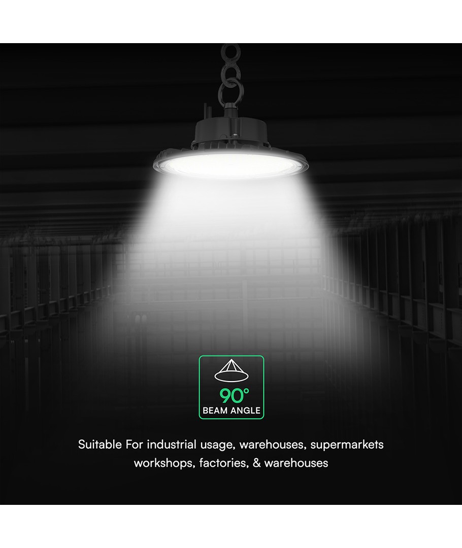 En kraftig og energieffektiv 100W V-Tac LED high bay med fremragende lysutbytte og robust design.