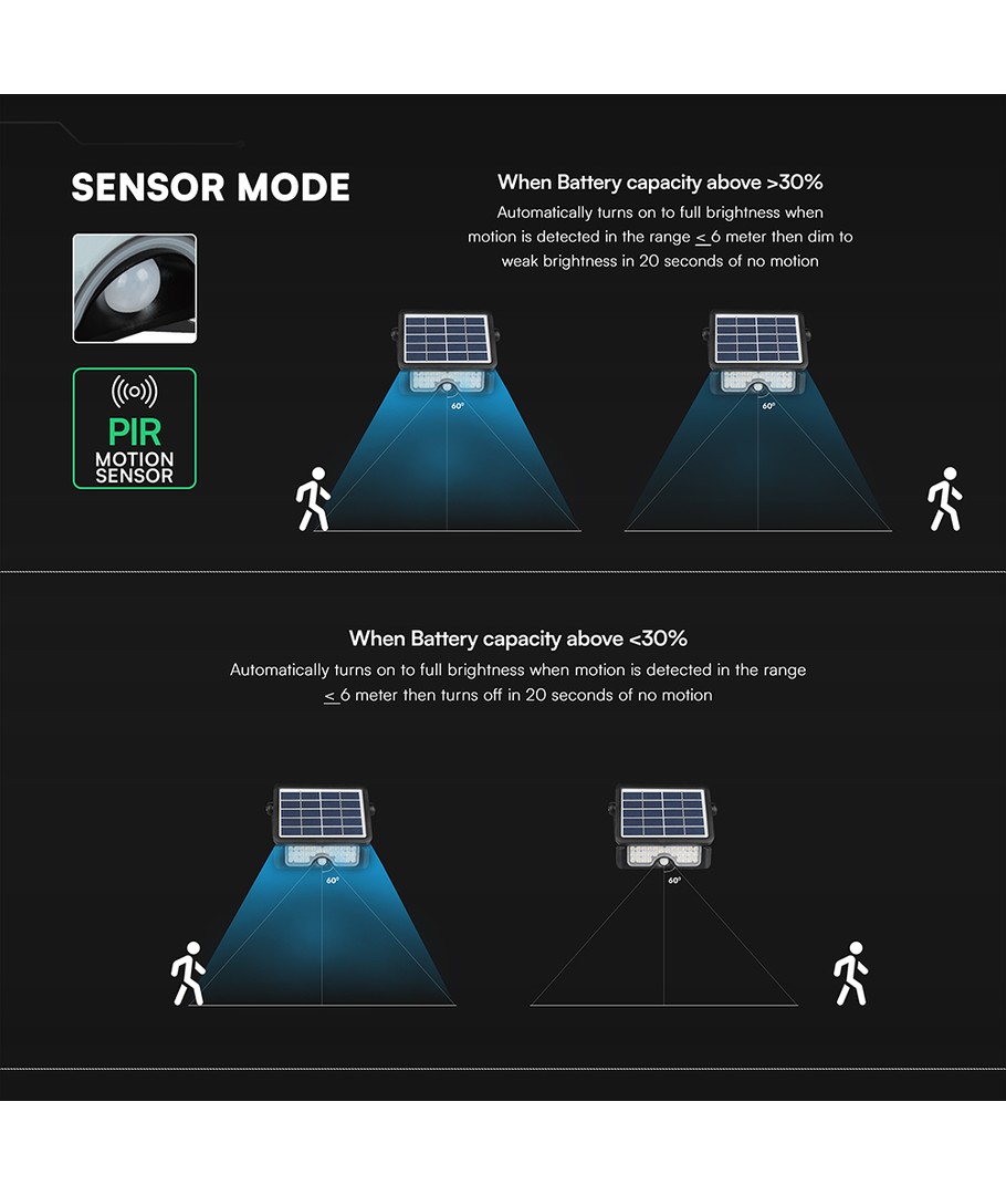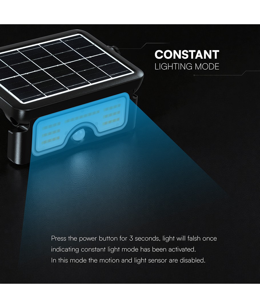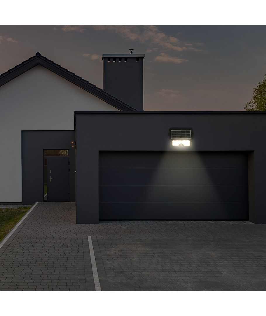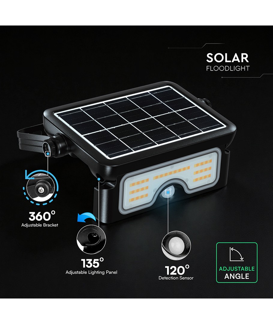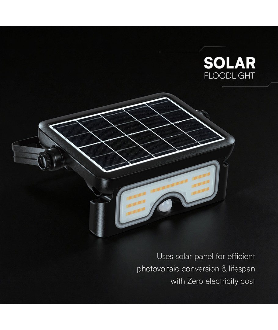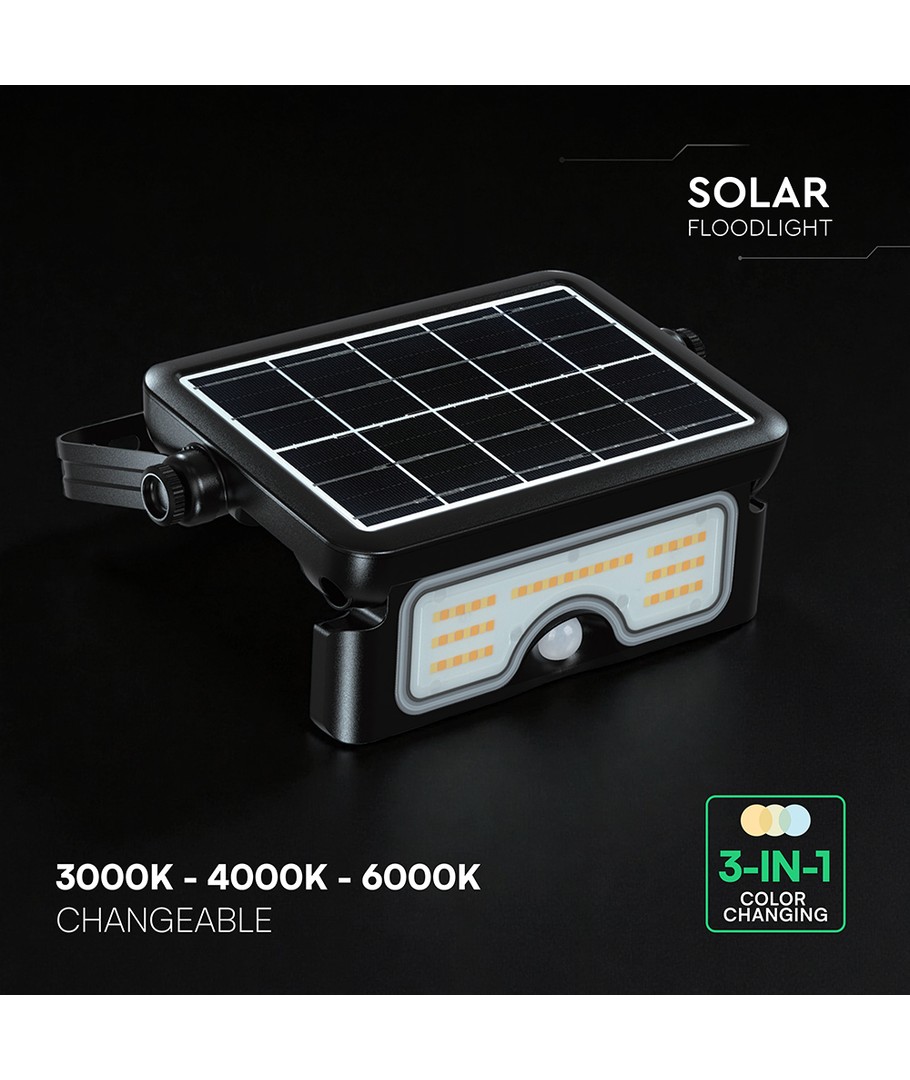 Denne 7W LED solcellelyskaster er utstyrt med en PIR-sensor og tilbyr fleksibel belysning med sitt 3-i-1 CCT-design.