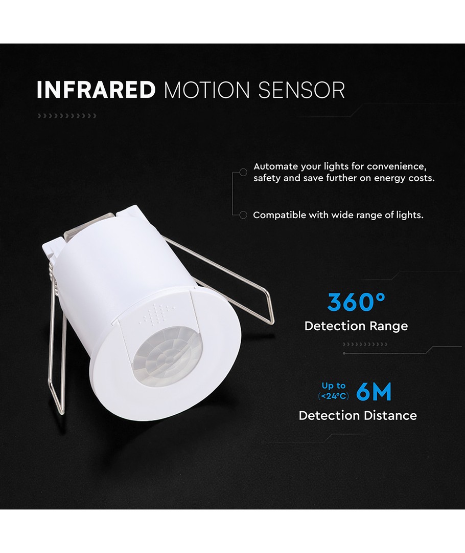 V-Tac infrarød bevegelsessensor er en ideell løsning for styring av belysning med fokus på energisparing.
