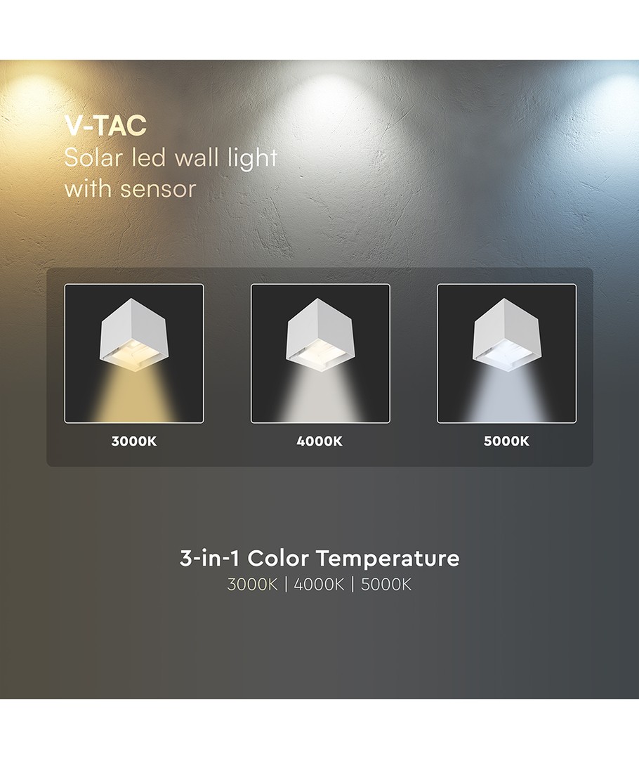 V-Tac 9W Solara vegglampe med sensor er en allsidig og energieffektiv belysningsløsning for utendørs bruk.