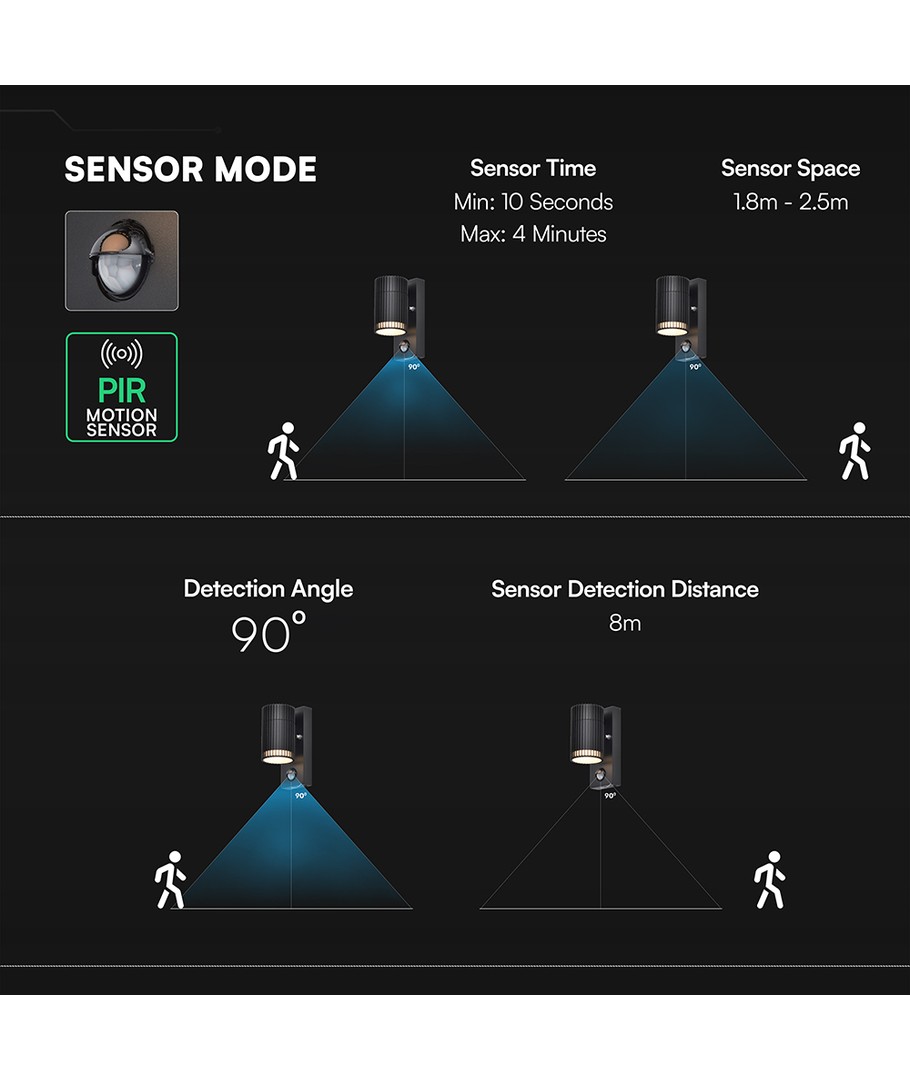 860lm, 3.7V, IP65, 3000K, PIR bevegelsessensor, varm hvit