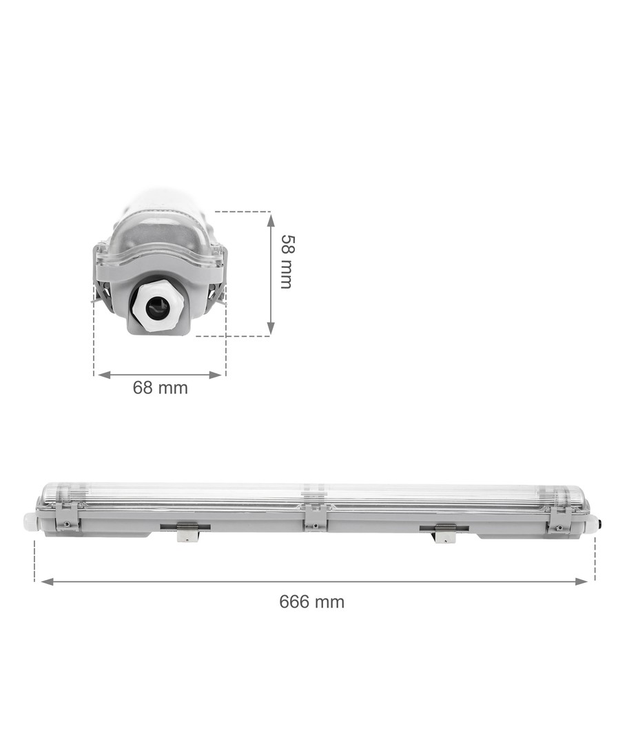 Vanntett armatur klar til 1 x 60 cm LED rør.