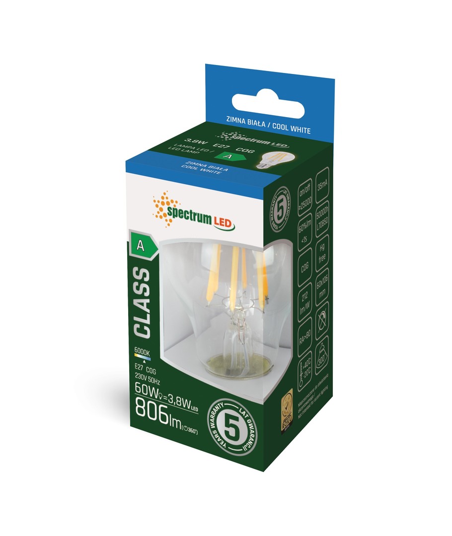 Velg Spectrum 3,8W LED pære i dag, og nyt en optimal kombinasjon av ytelse og stil, samtidig som du bidrar til en grønnere fremtid.