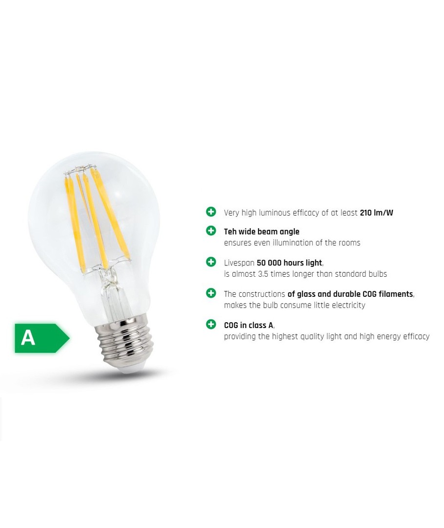 Denne LED-pæren er ikke bare funksjonell, men også stilig med sitt klare glass og karbonfilamenter, noe som gjør den til et utmerket valg både estetisk og praktisk. Ved å velge denne LED-pæren, deltar du aktivt i reduksjon av energiforbruk og bidrar til et mer bærekraftig miljø.