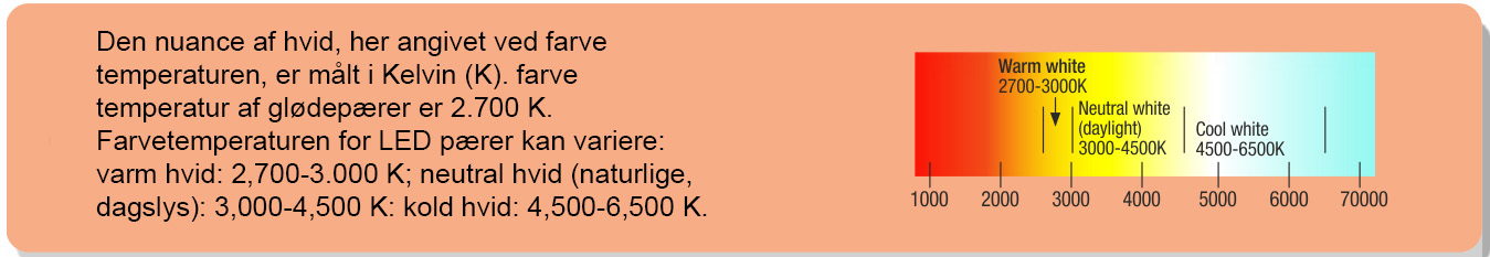 Ekstra varm hvit (2200 Kelvin) skaper en koselig og mer gyllen lysfarge , som er med på å skape en mer koselig atmosfære, som gjør den mest brukt hjemme.