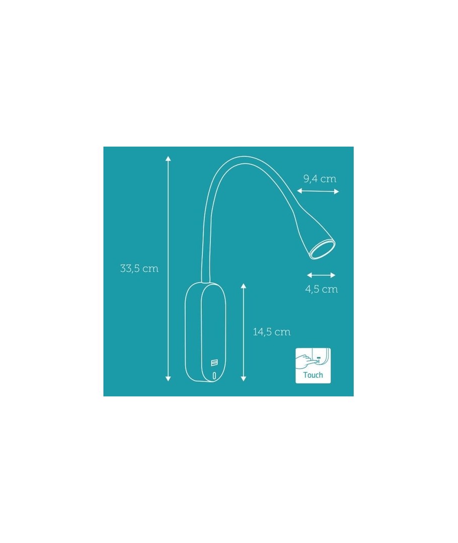 USB-port:En av de mest praktiske funksjonene ved denne vegglampen er den integrerte USB-porten, som lar deg enkelt lade smarttelefoner, nettbrett eller andre enheter uten behov for ekstra stikkontakter. Dette gjør den særlig ideell for soverom og arbeidsområder.