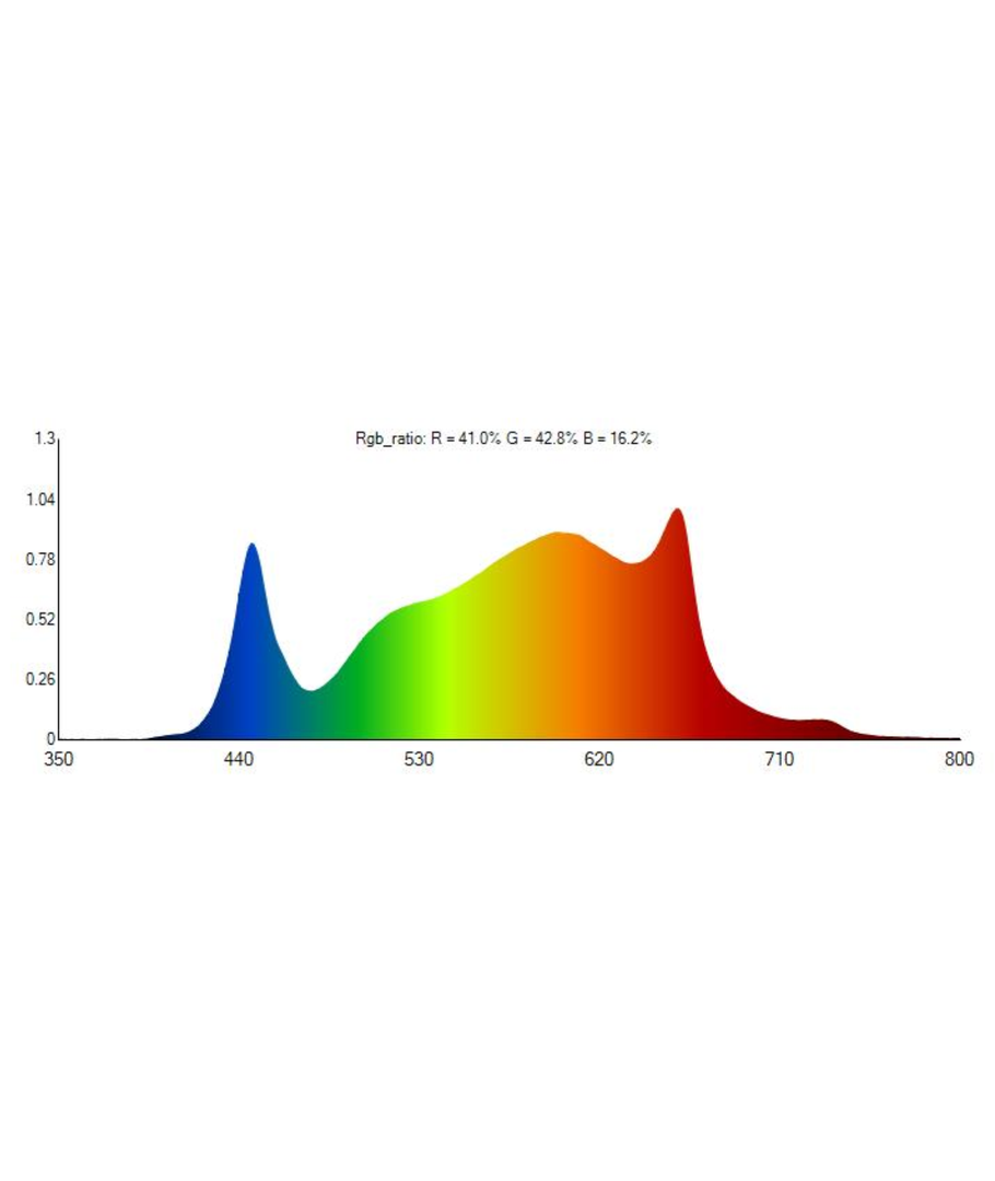 Fullspektrum vekstlampe, slik at plantene får det lyset de trenger, samtidig som lyset fremstår flott hvitt, med en RA-verdi over 90.
